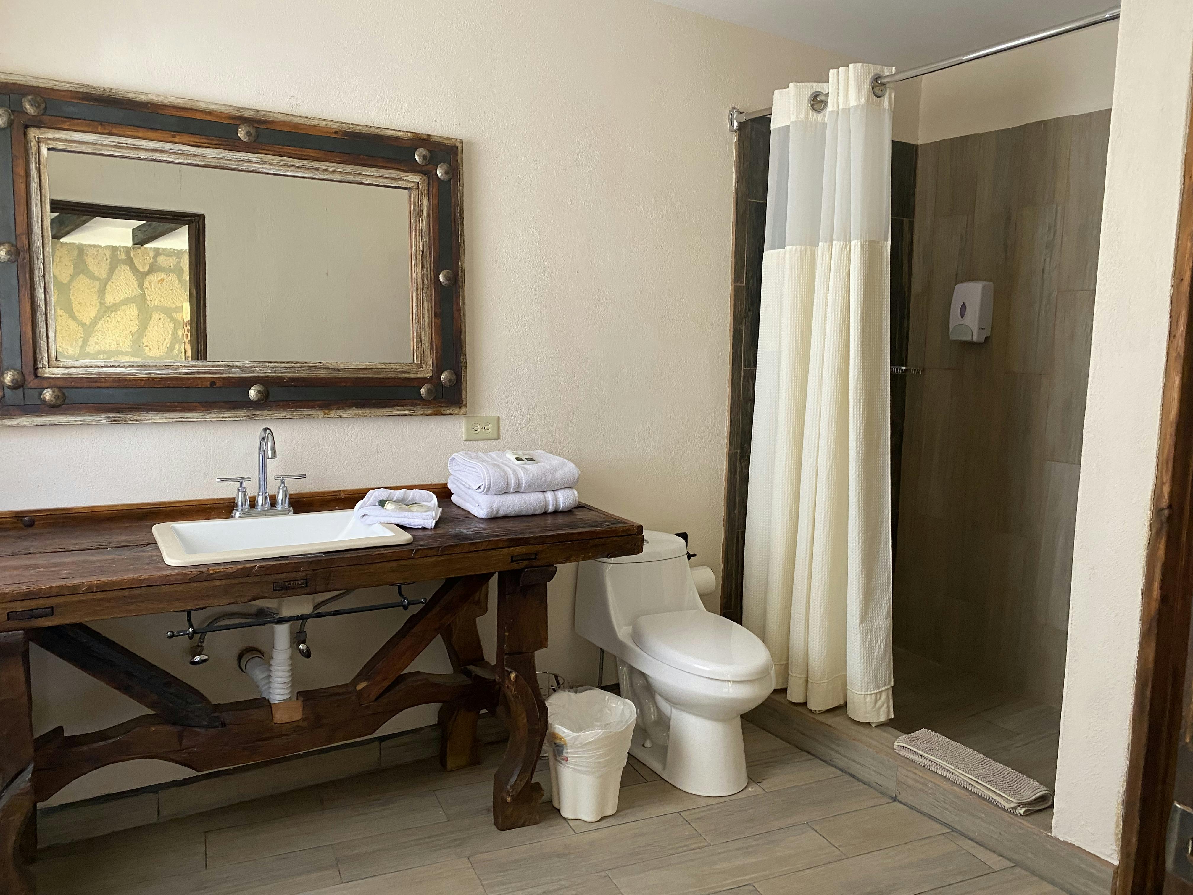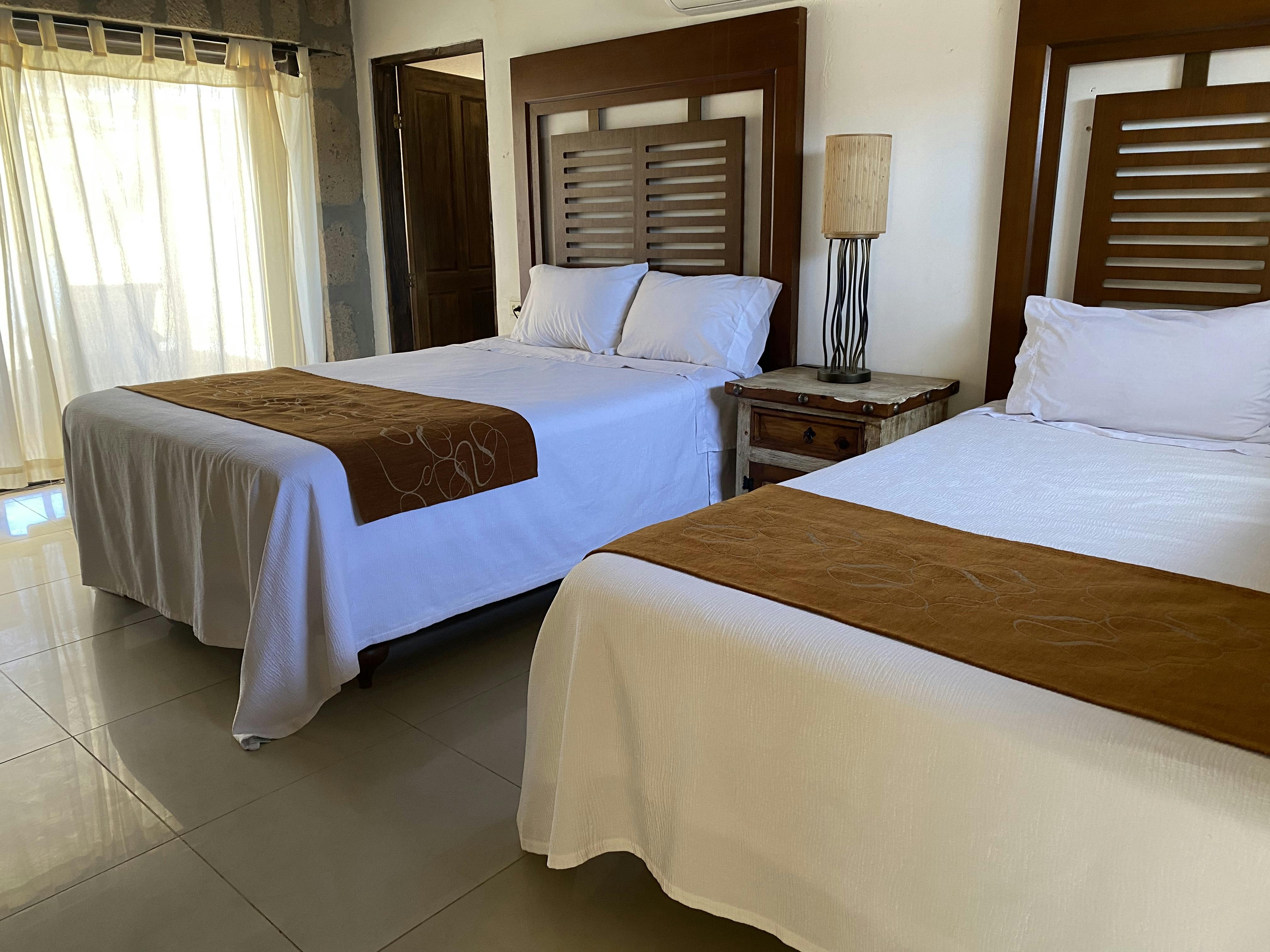 Planta alta: recámara con 2 camas Queen, baño completo y terraza grande con vista al mar